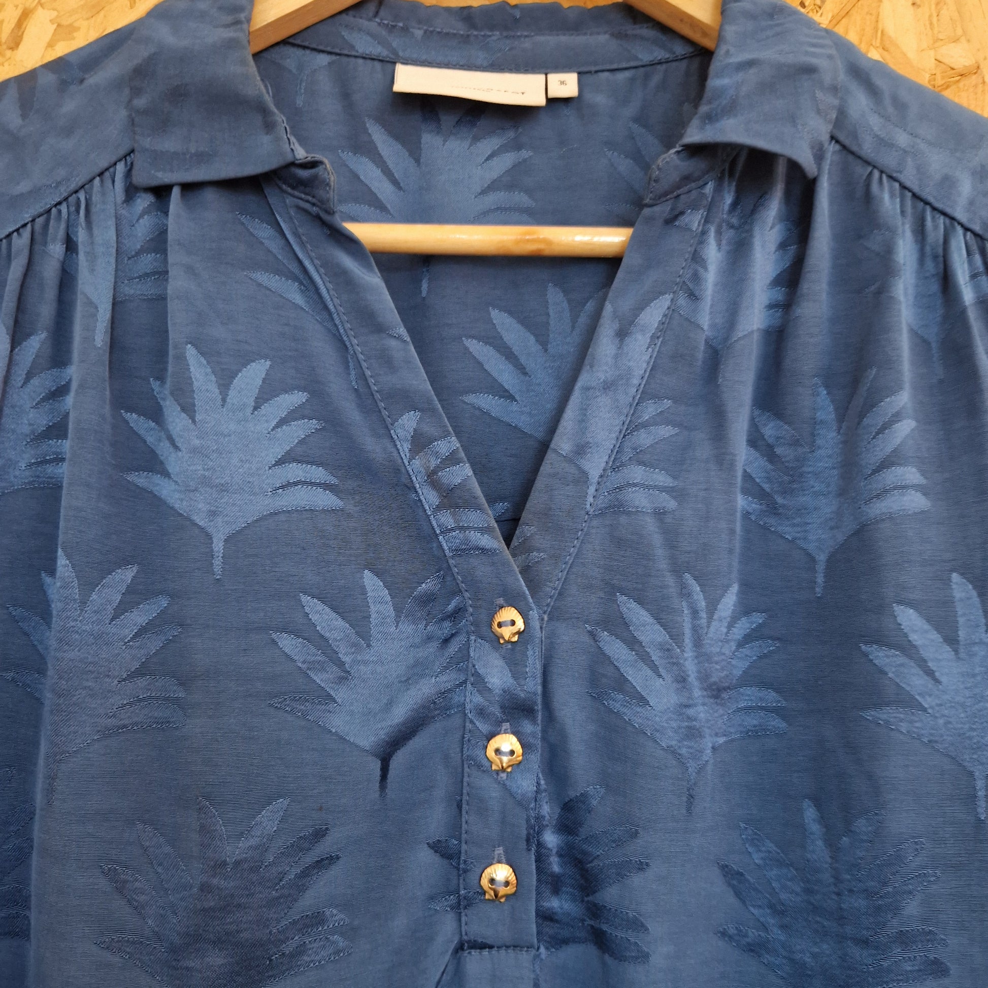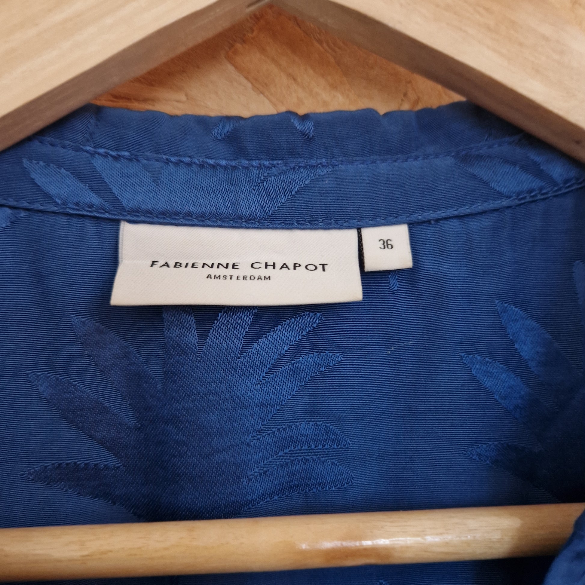 Elevate your wardrobe with this sophisticated Fabienne Chapot blouse, a timeless piece from the renowned Dutch designer. Crafted in a refined jacquard pattern, this size 36 blouse has 3/4 length sleeves, a collar & button placket.