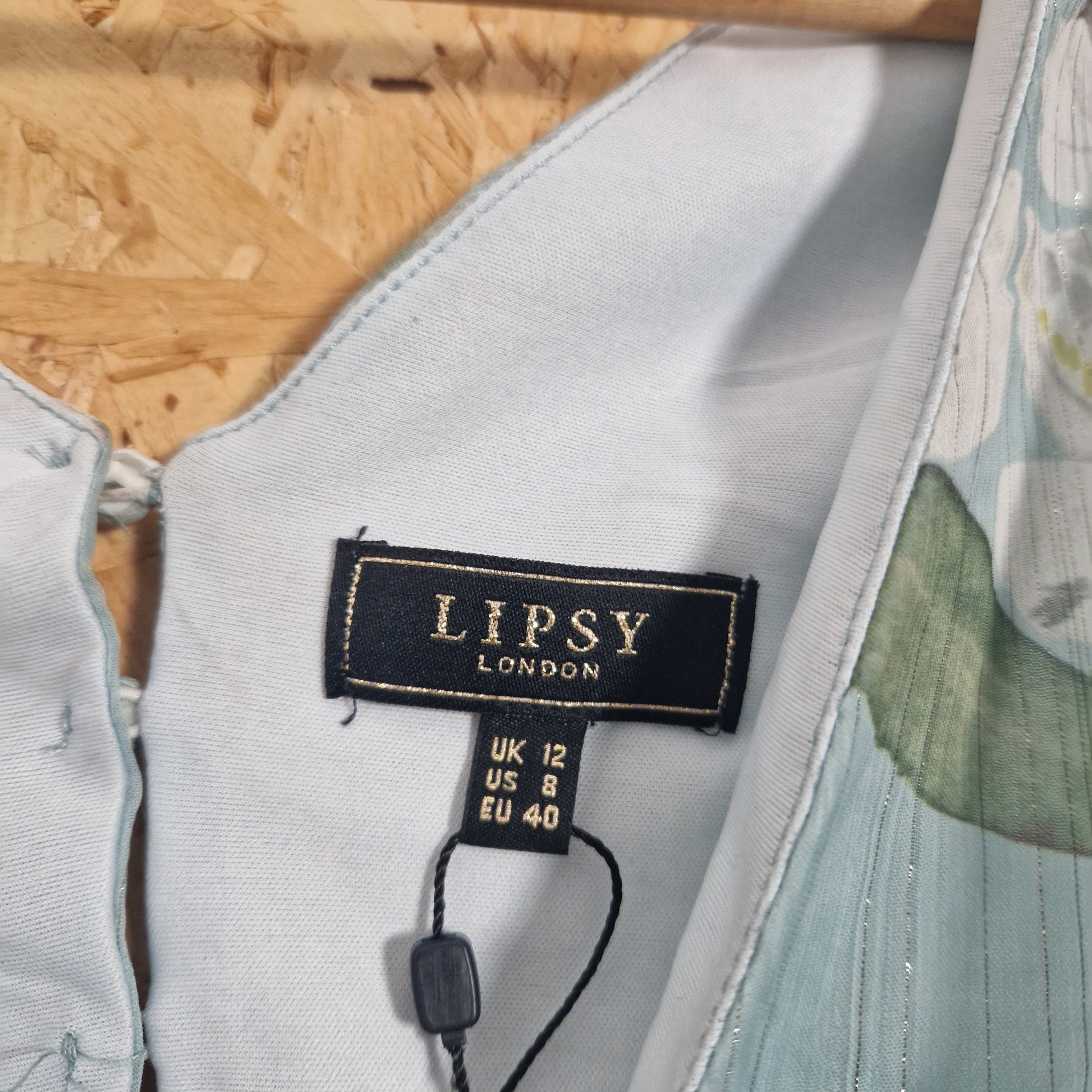 Brand New Lipsy V-Neck Chiffon Printed Dress with Cut Out Detail Size 12