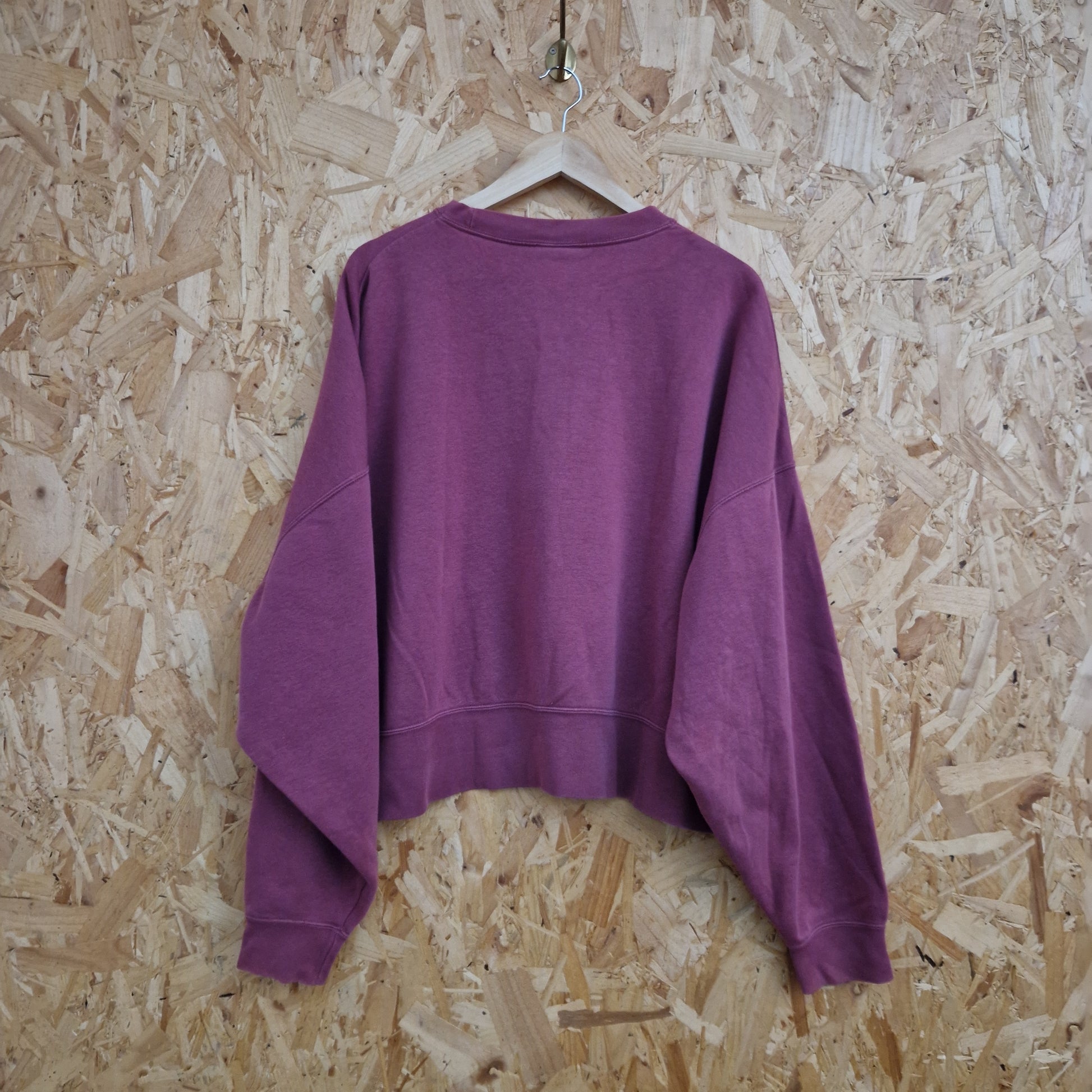 This preloved Nike boxy cropped sweatshirt in size large combines casual style with comfort. Featuring dropped shoulders for a relaxed fit, it offers stylish layering options. Perfect for a sporty yet chic look, this piece adds versatile appeal to your wardrobe.