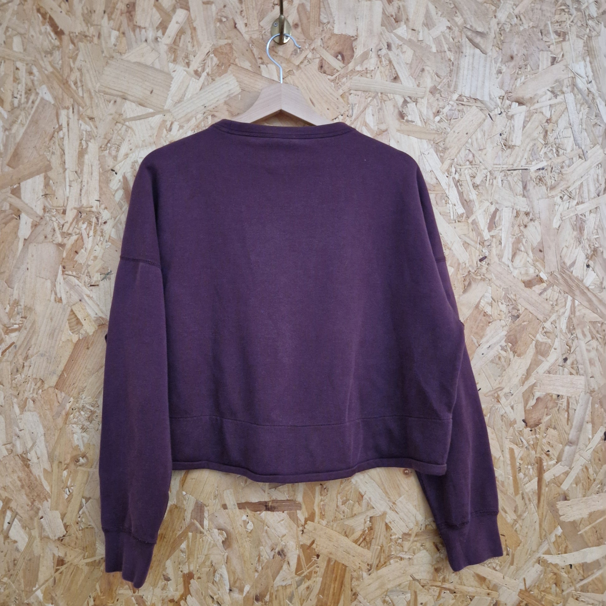 This preloved Nike cropped sweatshirt in size large offers a stylish fit with dropped shoulders for a relaxed silhouette. Perfect for layering or casual wear.